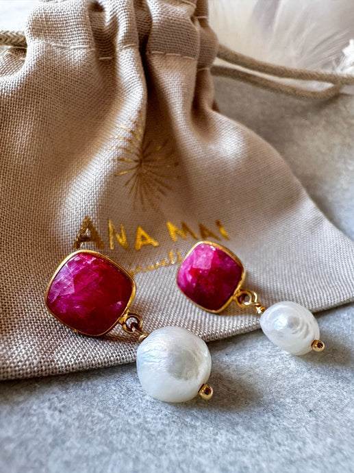 Fuchsia Chalcedony Teardrop Sunburst stud earrings