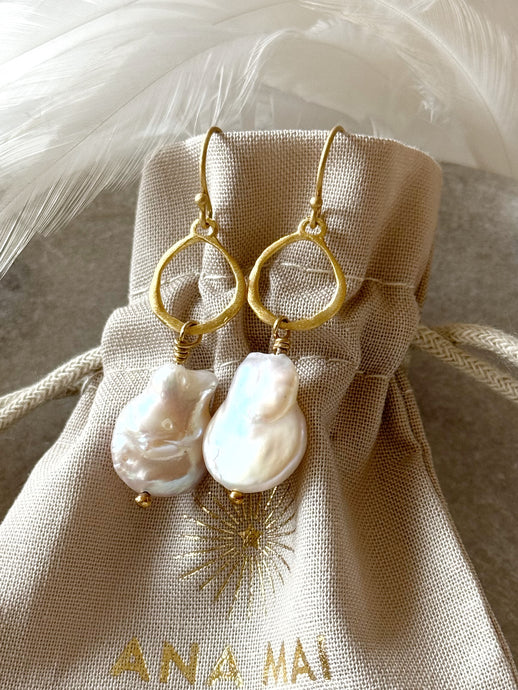 • Baroque Freshwater Pearl organic circle pendant earrings