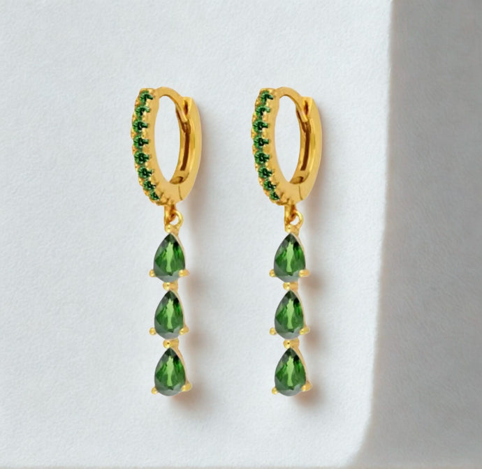 • Crystal Drop Round Gem Huggie Hoop Earrings