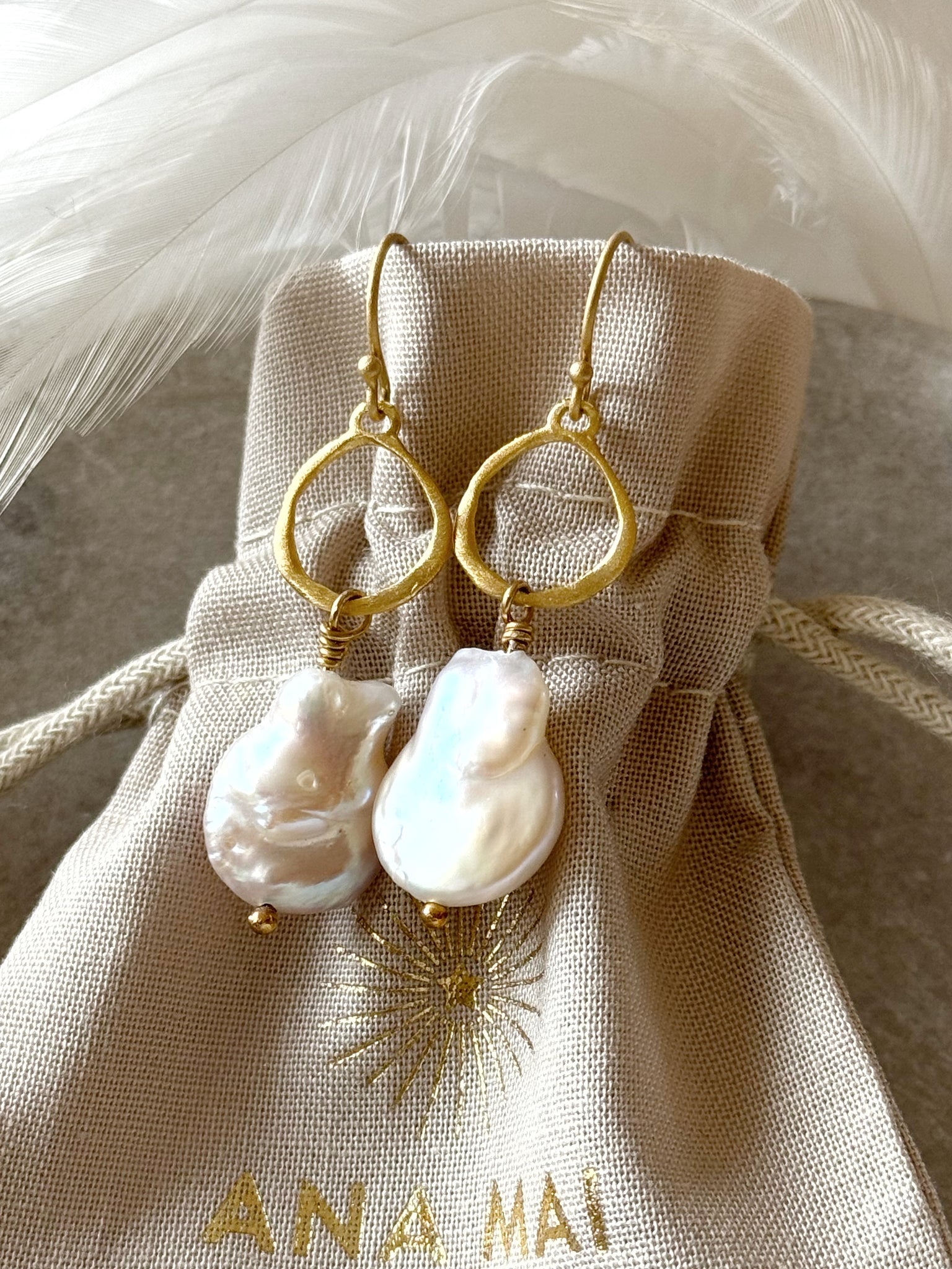 Beautiful baroque pearls! Set on French hooks and featuring an organic circle connector.