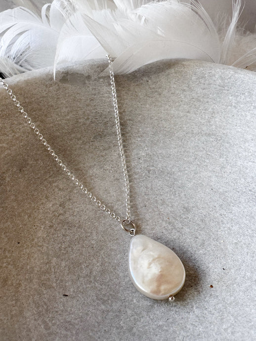 Teardrop Freshwater Pearl pendant Sterling Silver necklace