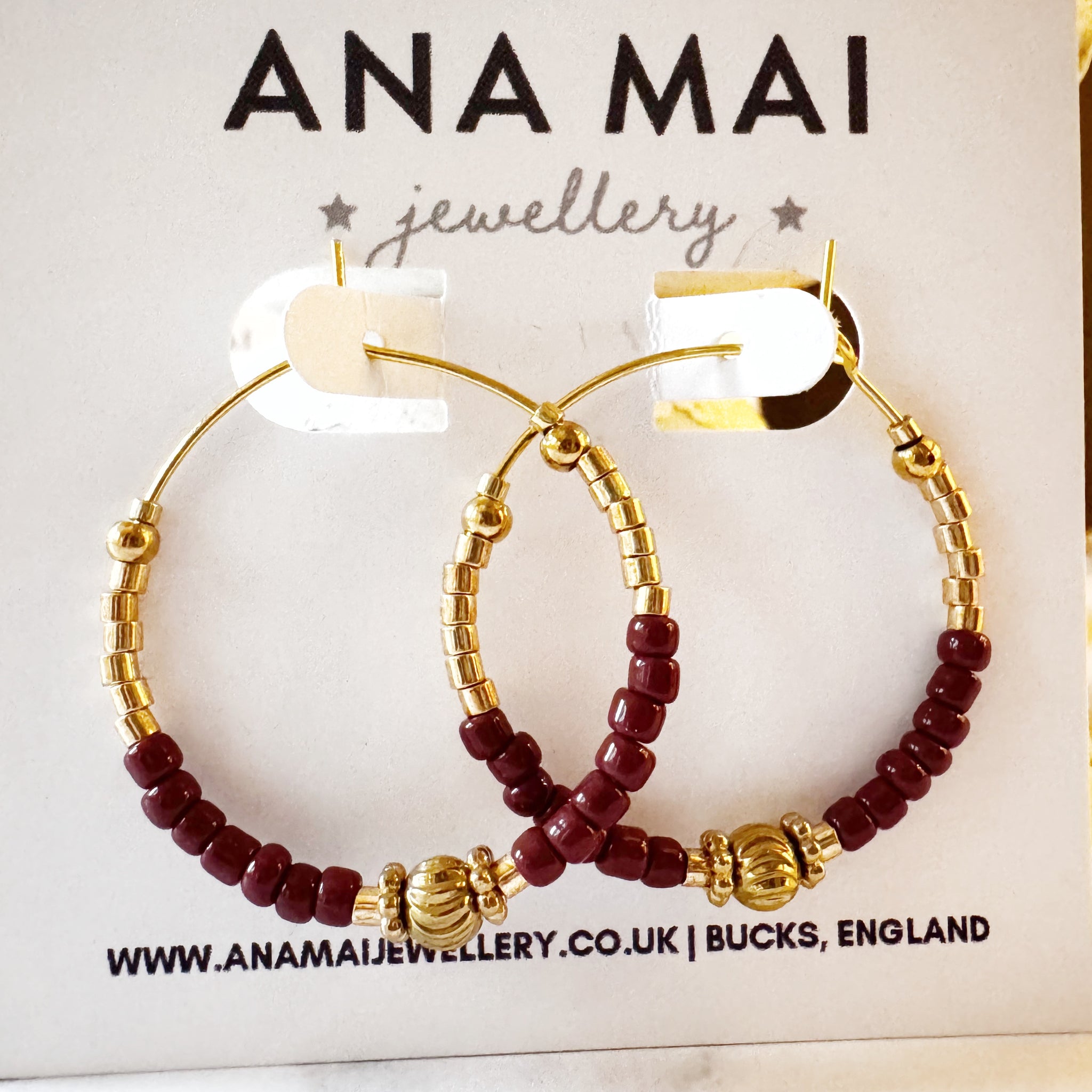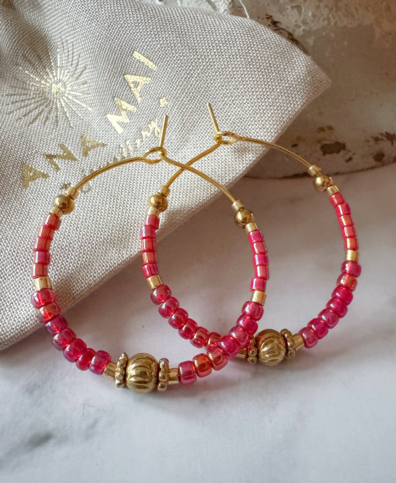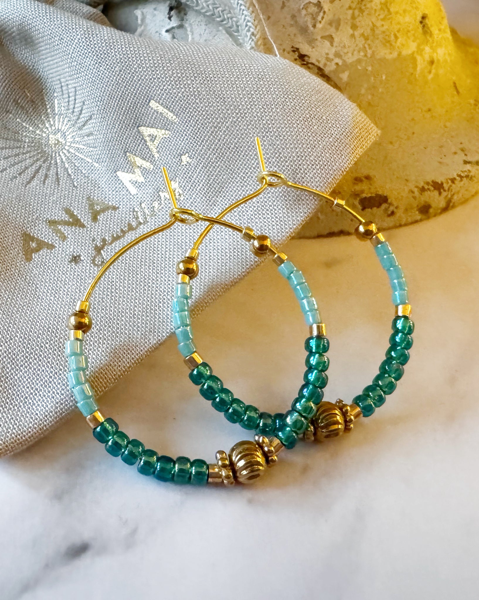 Delicate hoop earrings in a variety of beautiful shades of Japanese glass beads.