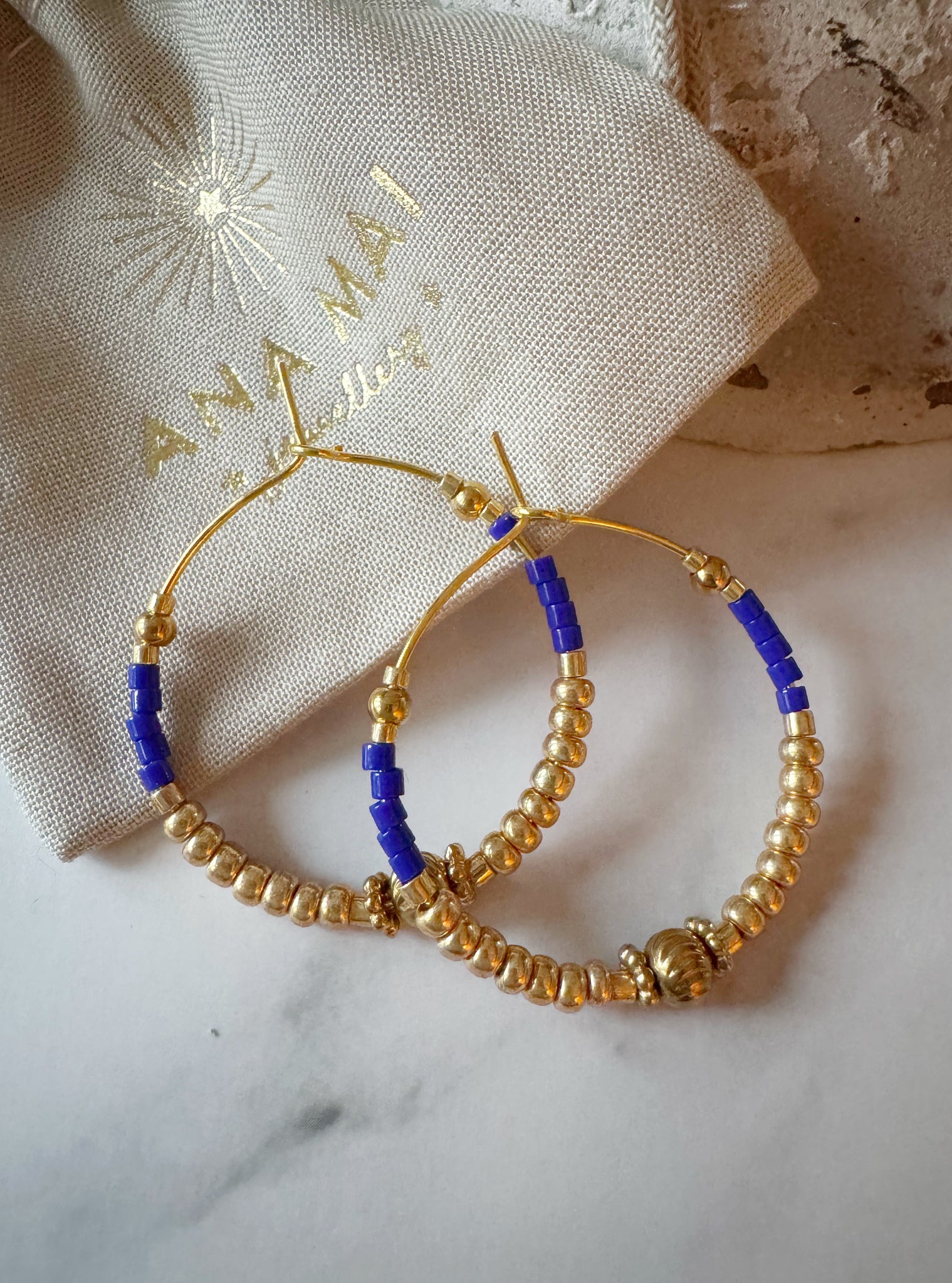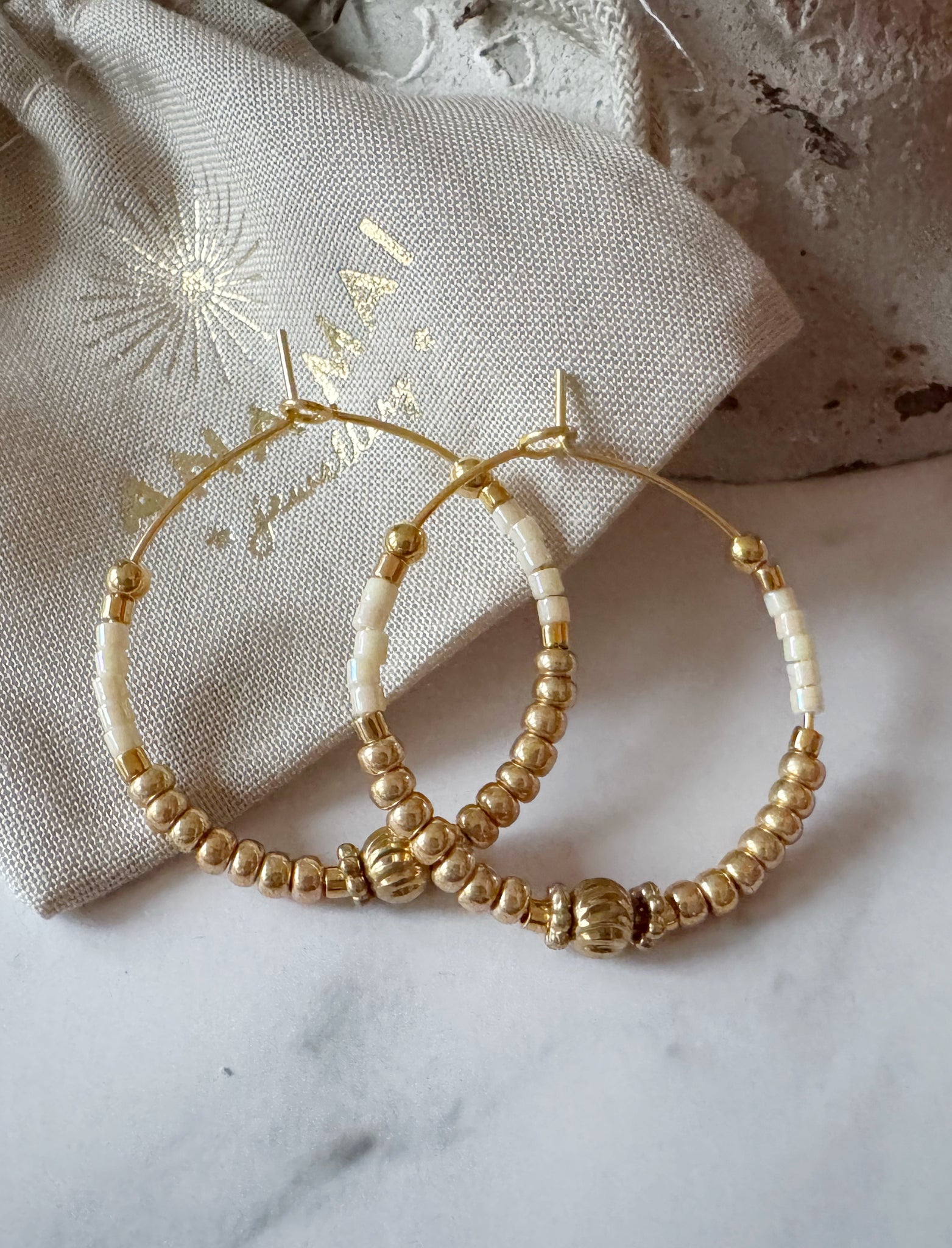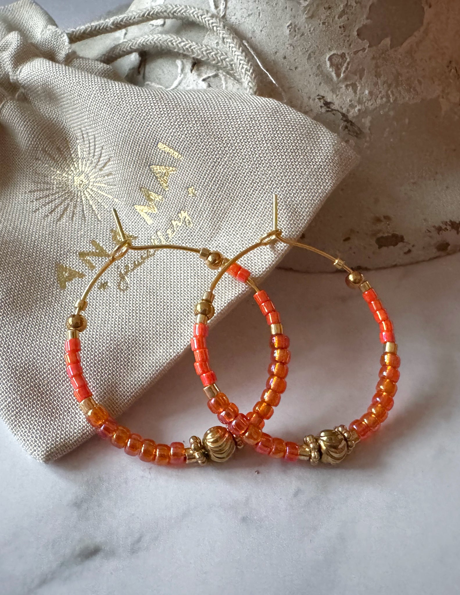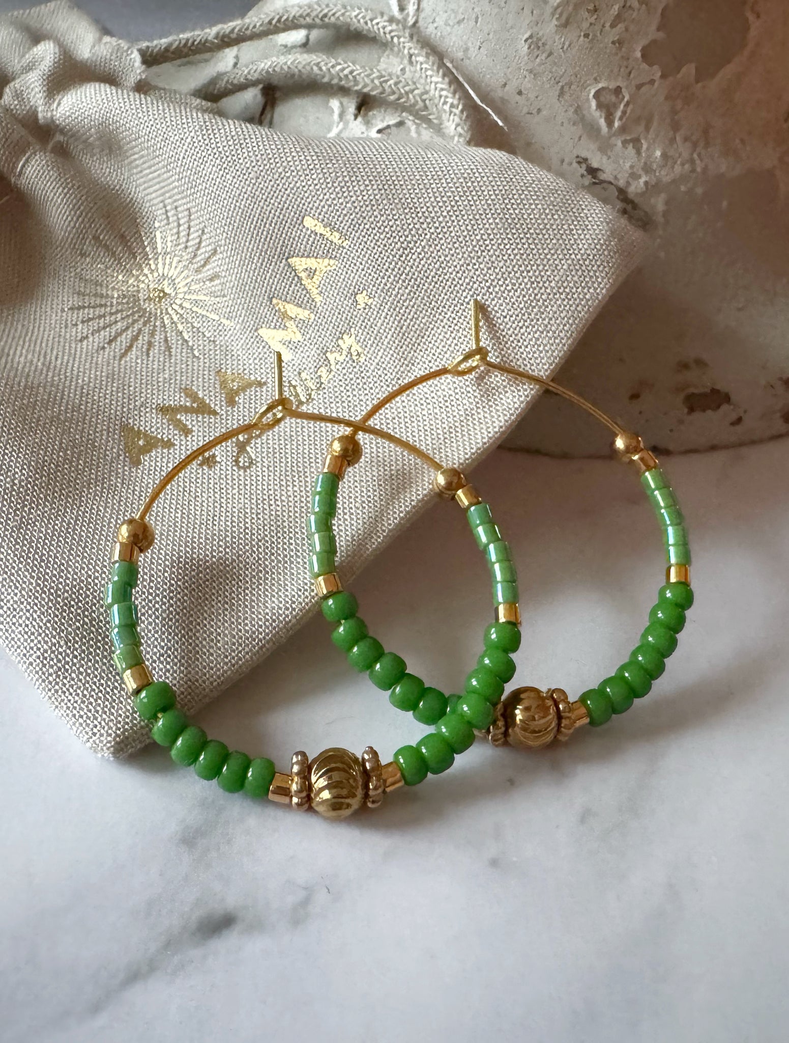 Delicate hoop earrings in a variety of beautiful shades of Japanese glass beads.