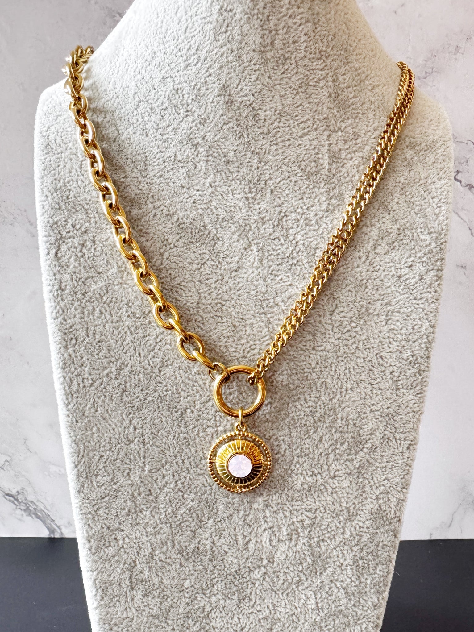 Beautiful round crystal charm on a pretty chunky double row chain.