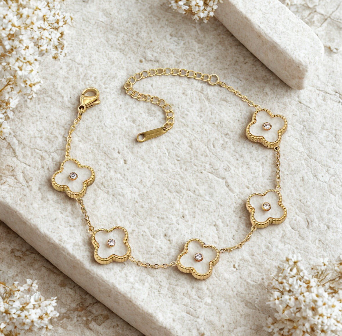Bracelet length 17cm with adjustable 5cm extension.