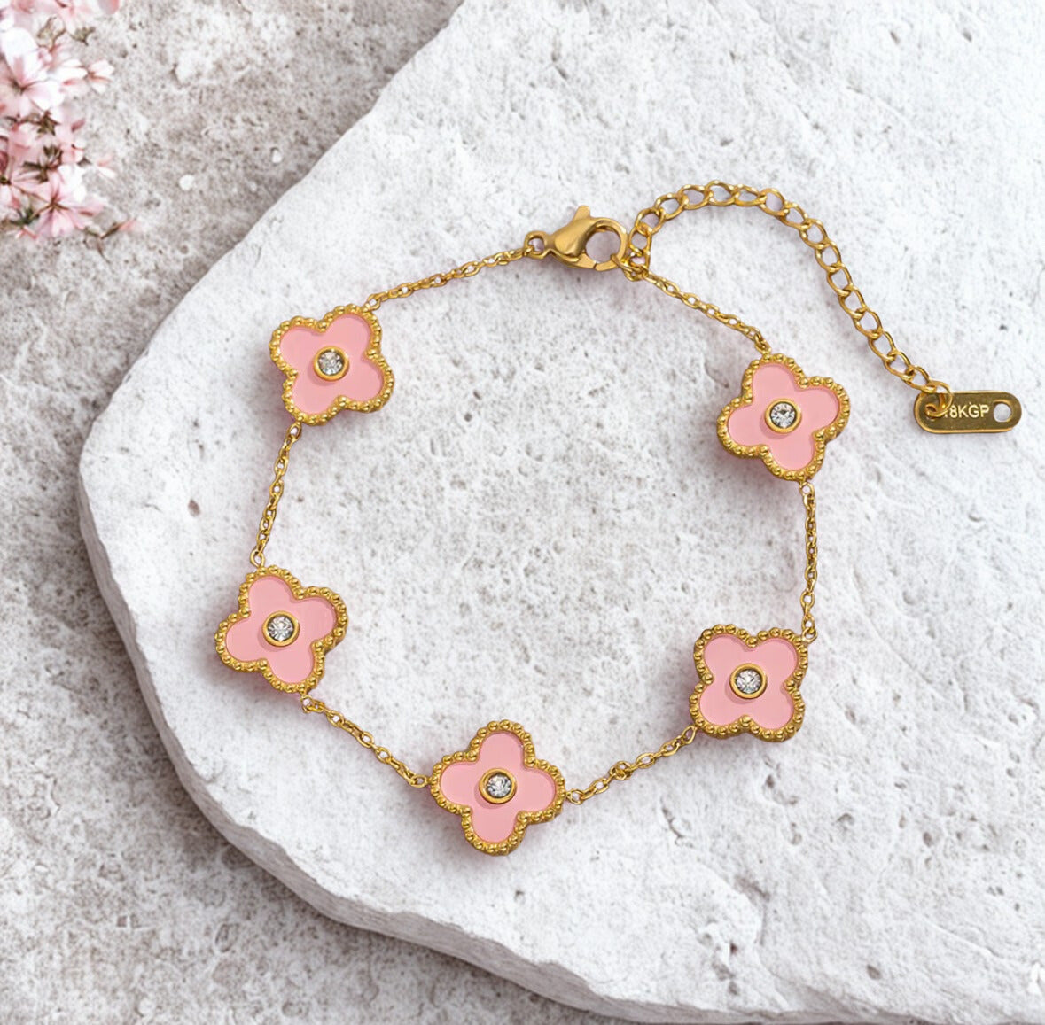 Four leaf clover bracelet in 9 beautiful colour combinations.
